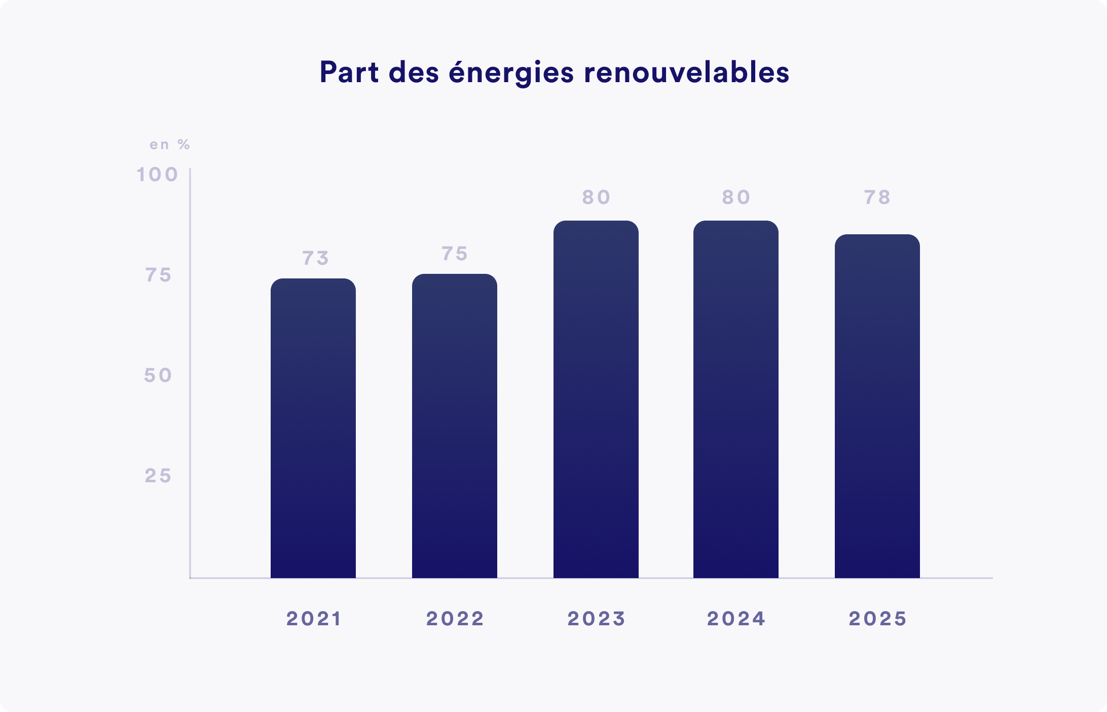 Comme le montre le graphique ci-dessous, la part des énergies renouvelables n'a cessé d'augmenter ces dernières années. En 2025, on a toutefois constaté un léger recul, car de plus en plus de produits ont été fabriqués sur des lignes de production fonctionnant au propane. Début 2026, nous avons encore agrandi nos installations photovoltaïques internes et nous prévoyons donc une nouvelle augmentation de la part des énergies renouvelables à l'avenir.